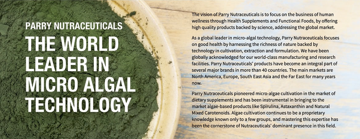 In 2015, Parry Nutraceuticals achieved another milestone in Microalgae research and development by producing Organic Chlorella, another green microalgae Superfood which is reach in Chlorophyll, Essential Vitamin, Minerals and Fattys acids. Chlorella also contains Chlorella Growth Factor which is essential for tissue repair and cell regeneration.